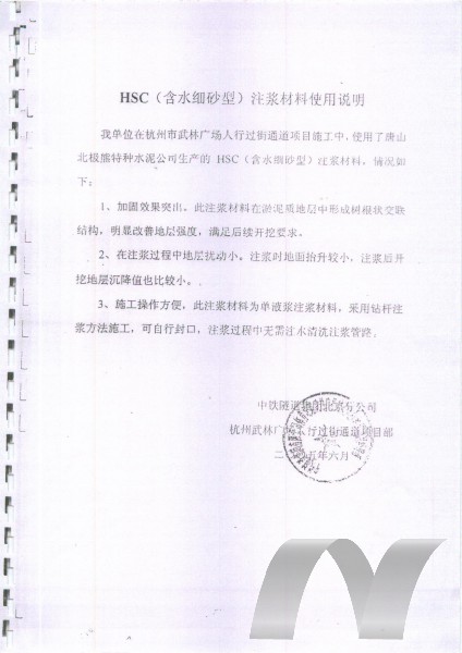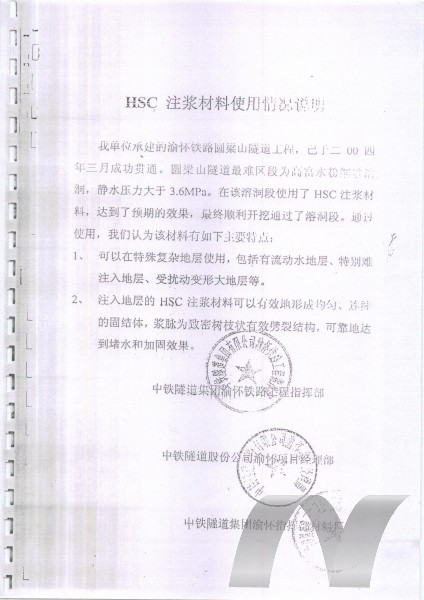 HSC含水細(xì)砂型注漿材料在可注性差的地層以有效劈裂注漿為主,并有少量滲透注漿現(xiàn)象存在。適用于: